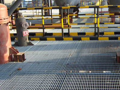 化工廠用鋼格板 鋼格板是用承載扁鋼和橫桿按照一定的間距進行正交組合,通過焊接或壓鎖加以固定的開敞式鋼構(gòu)件;橫桿一般采用經(jīng)過扭絞的方鋼、也可采用圓鋼或扁鋼,材質(zhì)分為碳鋼和不銹鋼鋼格板主要用來做鋼結(jié)構(gòu)平臺板、溝蓋板、鋼梯的踏步板、建筑物吊頂?shù)取? 簡介 ···